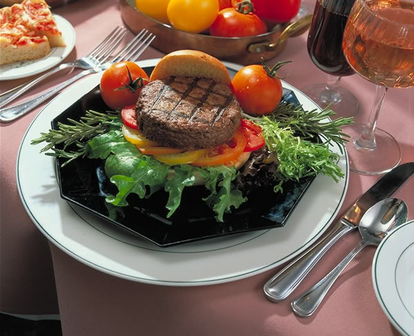 Fuddruckers has a pretty extensive menu which offers the Original Fudd in 1/3 pound $4.65, ½ pound $5.50, 2/3 pound $7.50, and 1 lb. $9.50, as well as some serious specialty burgers, for $1.75 more, like the Southwest which is topped with smokehouse bacon, guacamole and pepper jack cheese or for fans of exotic meats some of the Fuddruckers are even starting to offer Buffalo, Elk, and Wild Boar burgers in an attempt to compete with the new burger places that we will discuss a little later. Fuddruckers also offers something that I have not found at any of the other burger bistros, a self-serve toppings bar that allows the customer to add as much or as little of the dozens of toppings that Fudds offers. Additionally, Fuddruckers has a full service bar featuring beer, wine, and spirits which is a huge plus in the ever growing burger trade.