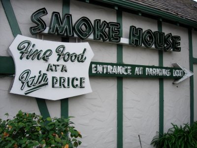 While driving around the Burbank area, Kat and I drove past this unassuming eatery and noticed a neon sign that read, “fine food at a fair price.” You would think that the sign read, “Free Bacon,” because the next day Kat and I were on our way to explore Smoke House with some friends and family that we were visiting with during our stay.