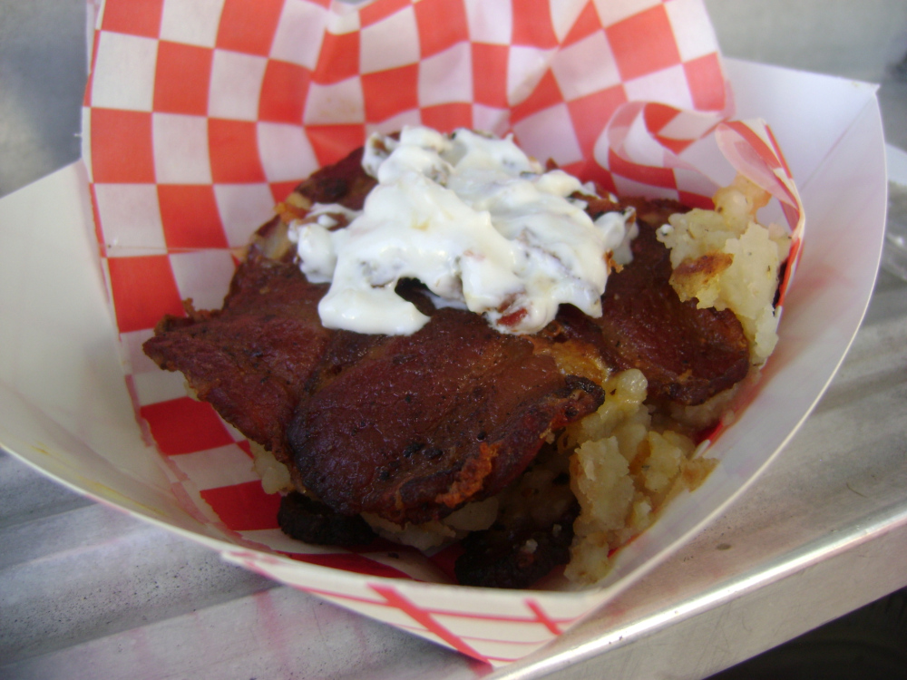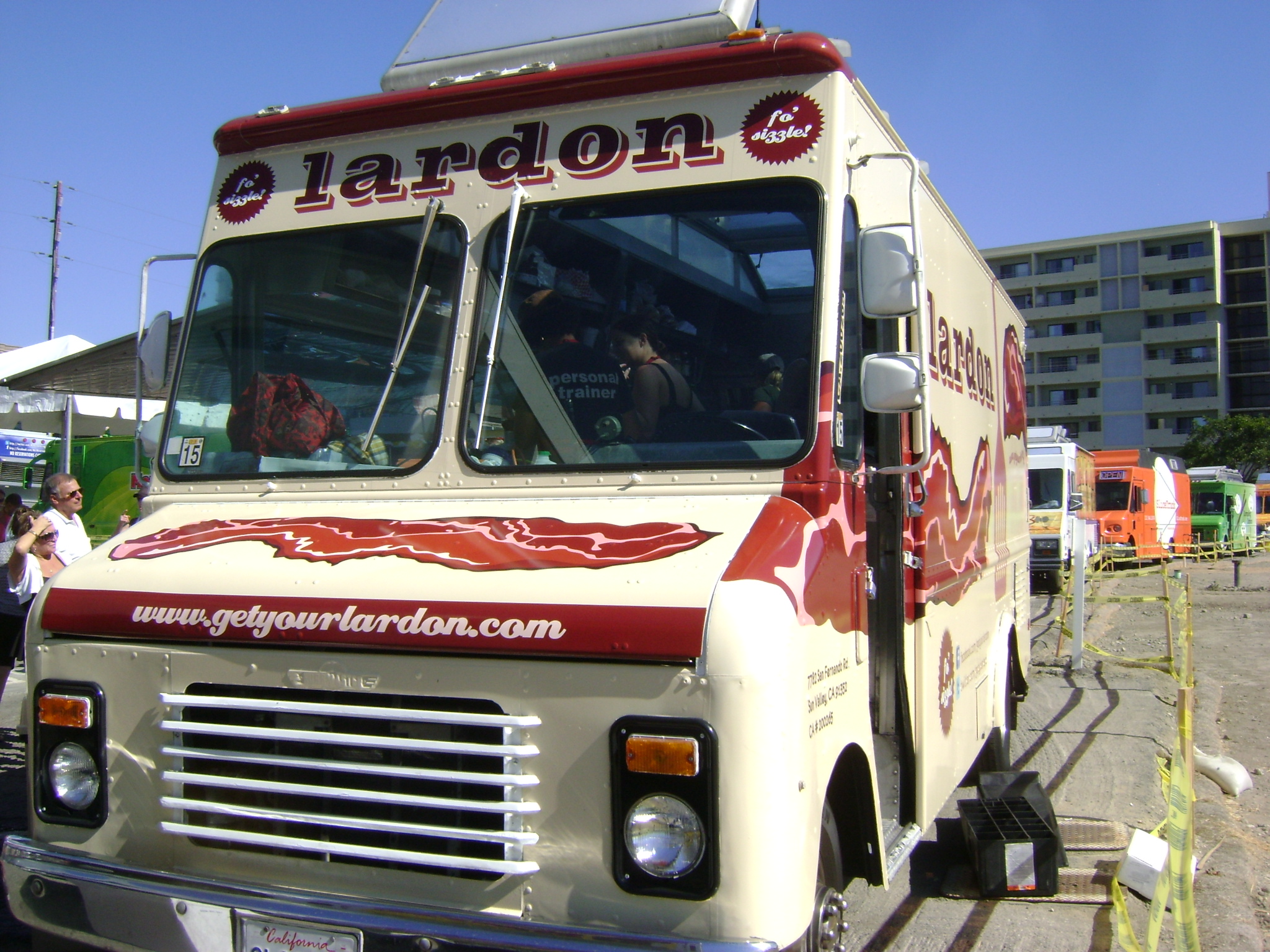 The food truck that converted us to the church of portable cuisine was none other than the delectably decadent Lardon. This now extinct beast was the countries’ first and, as far as I know the only Bacon themed food truck. Lardon was so popular due to its Baconey goodness that it was featured on numerous Television Shows including everyone’s favorite Ginger, Conan O’Brien. Just reading Lardon’s menu literally added cholesterol to your system. Some of the menu highlights were, The Bacone which consisted of three strips of exotic bacon, such as Duck or Wild Boar, Chicken Wings covered in bacon hot sauce, topped with hot sauce covered bacon served with a bacon blue cheese dipping sauce, and of course the BACO, a Taco Shell made entirely out of BACON!