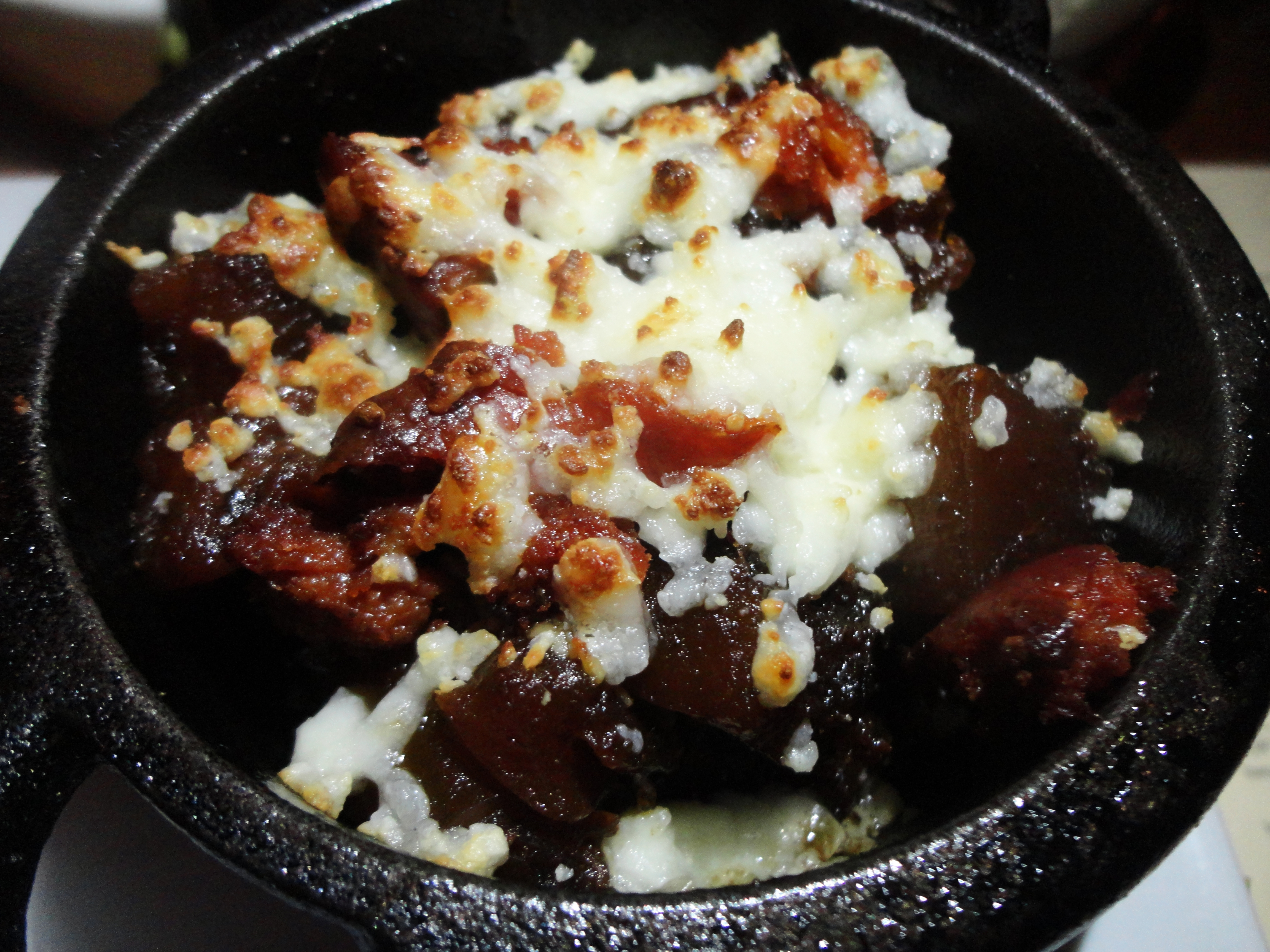Nothing like taking a healthy salad and topping it with everything that is unhealthy and tasty in the kitchen