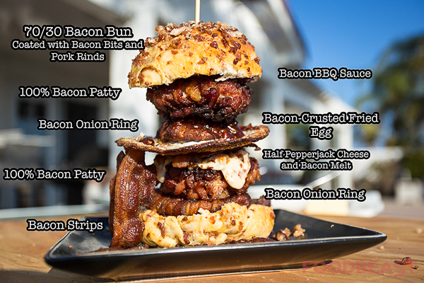 Are you tired of all that beef getting in the way of your Bacon?  If you answered  Yes to that question you need this burger in your life.  It is made almost entirely out of Bacon and your heart very well explode from the first bite of this beast.  But at least you will die with a smile on your face.