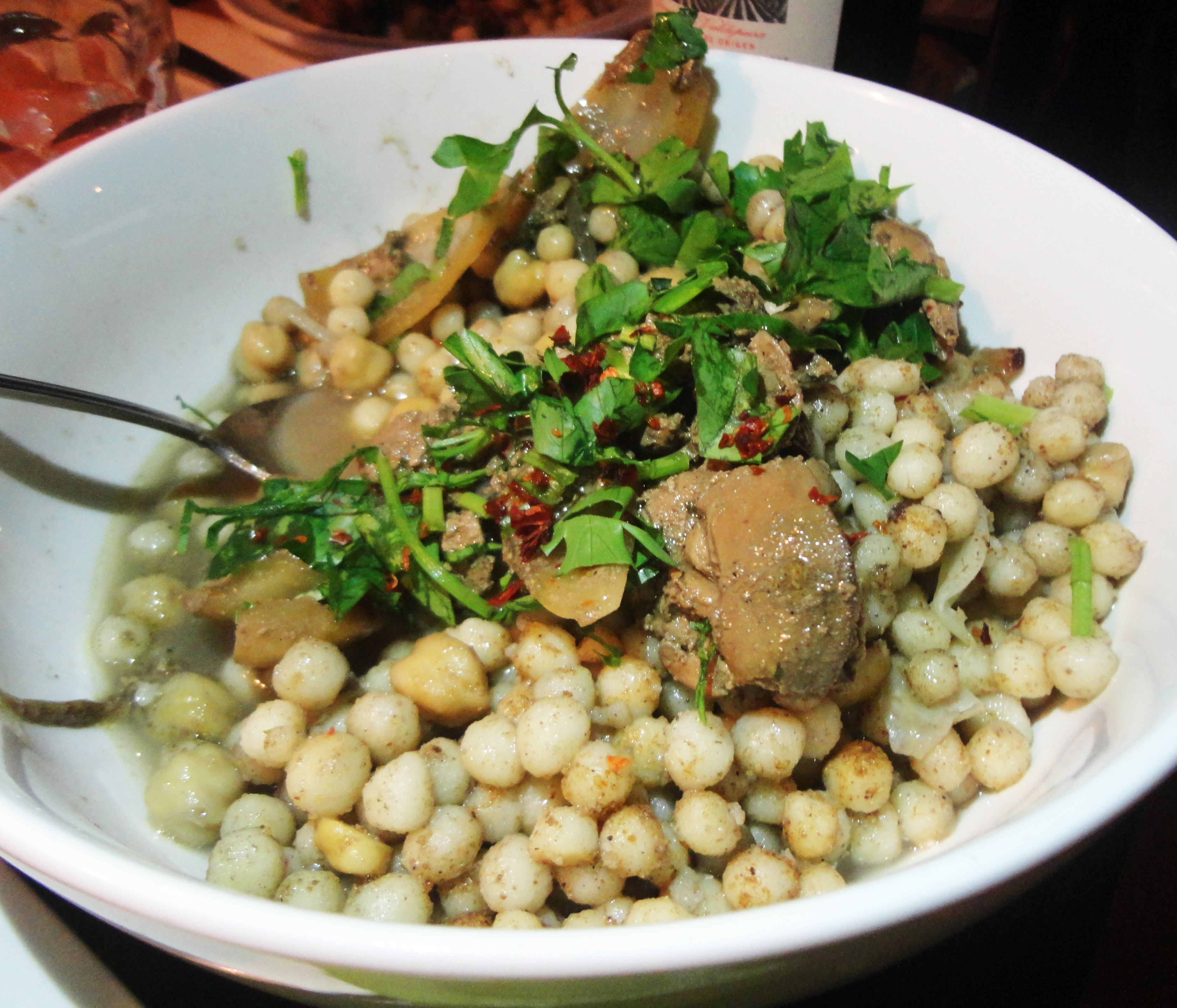 If the fatteh was not enough to get your taste buds dancing like Elvis on The Ed Sullivan Show, the Chef also sent out a serving of Moughrabiyeh, which is large grain couscous. He decided to add a little liver to the dish to add a little Gastronaut style to the mix which only added to the already flavorful combination of the spices that were having a party in the bowl.