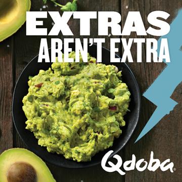 Since my commute was five minutes, and I was only cut off once on my way to Qdoba, when I entered the restaurant with Kat, my foodie partner for the evening, I was much calmer than I have ever been at those Burrito shops located in the 7th ring of traffic hell known as Paramus. To add to my elation, as soon as I walked into the building, I noticed a sign that simply read, “Extras Aren’t Extra!”   Could this be true? Is this a Dream, I thought to myself. They can’t just give stuff away for free, right? Or could they?