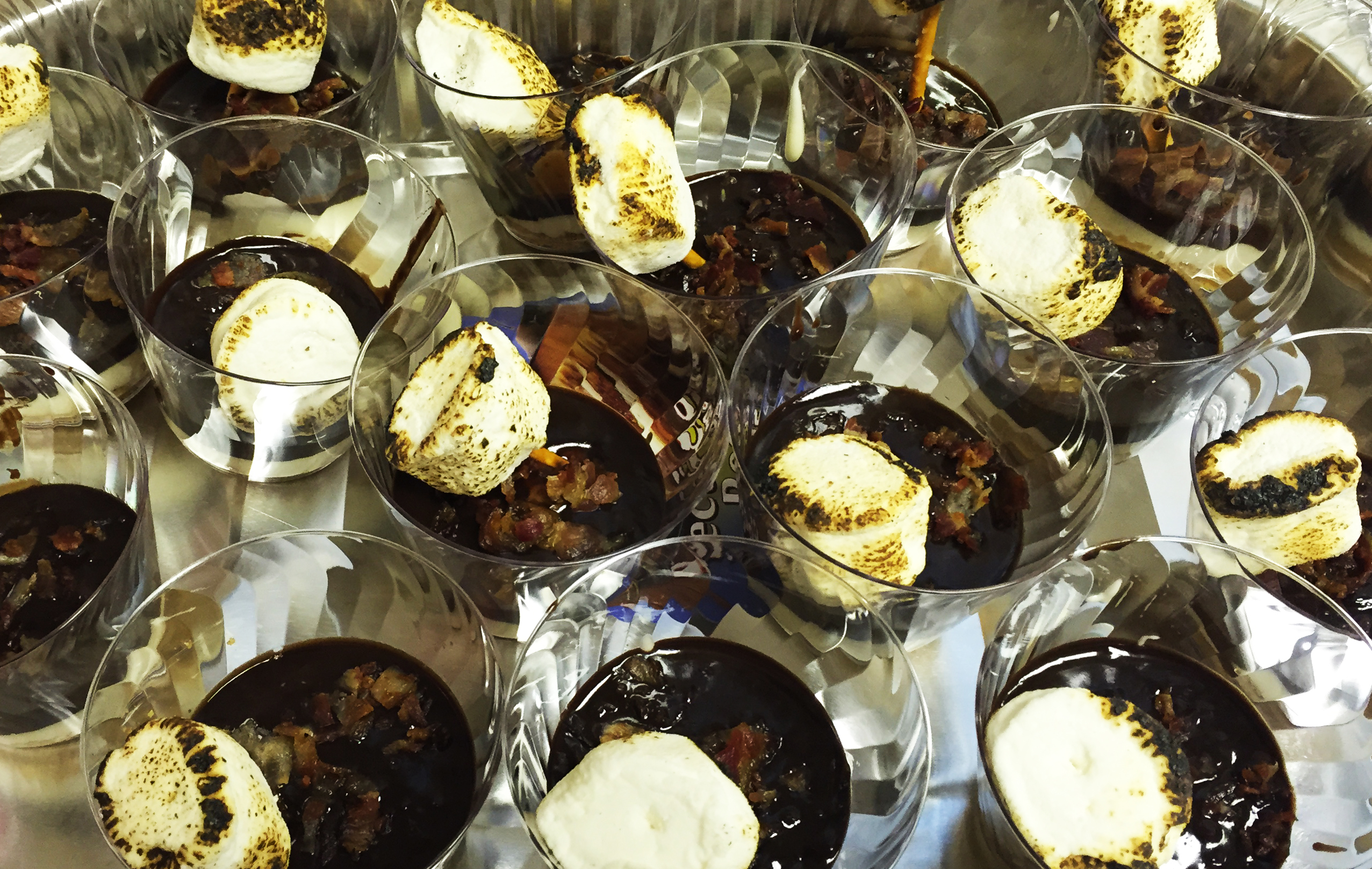 Your favorite campfire delight, but with bacon! This is a bacon s’mores no-bake cheesecake with bacon bits mixed into the graham.