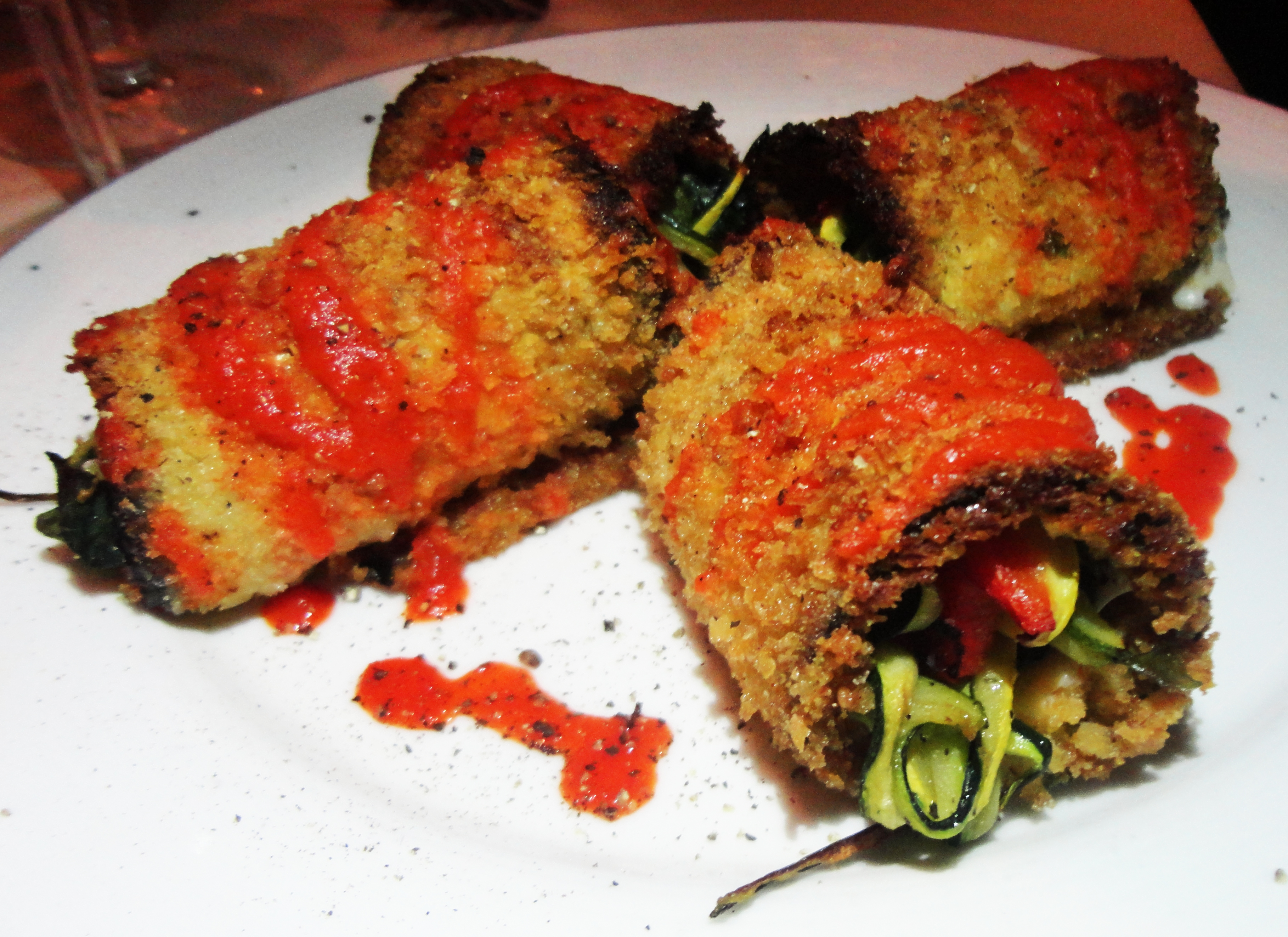 As we finished our appetizer, we ordered another drink and once again allowed the band to make sweet, sweet, love to our ears. Yup, I heard it as I typed it. That was a weird, weird sentence. Sorry for that internets. Anyhow, the entrees arrived and the sheer size of the dishes took us by surprise. Both of our entrees were ginormous, and I am not going to lie, their girth combined with the aroma that was emanating from them made me one happy foodie.